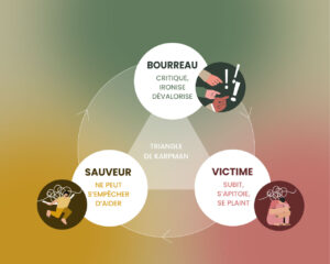 Le triangle dramatique de Karpman est un modèle conceptuel créé par Stephen B. Karpman, psychiatre et analyste transactionnel, en 1968.Il